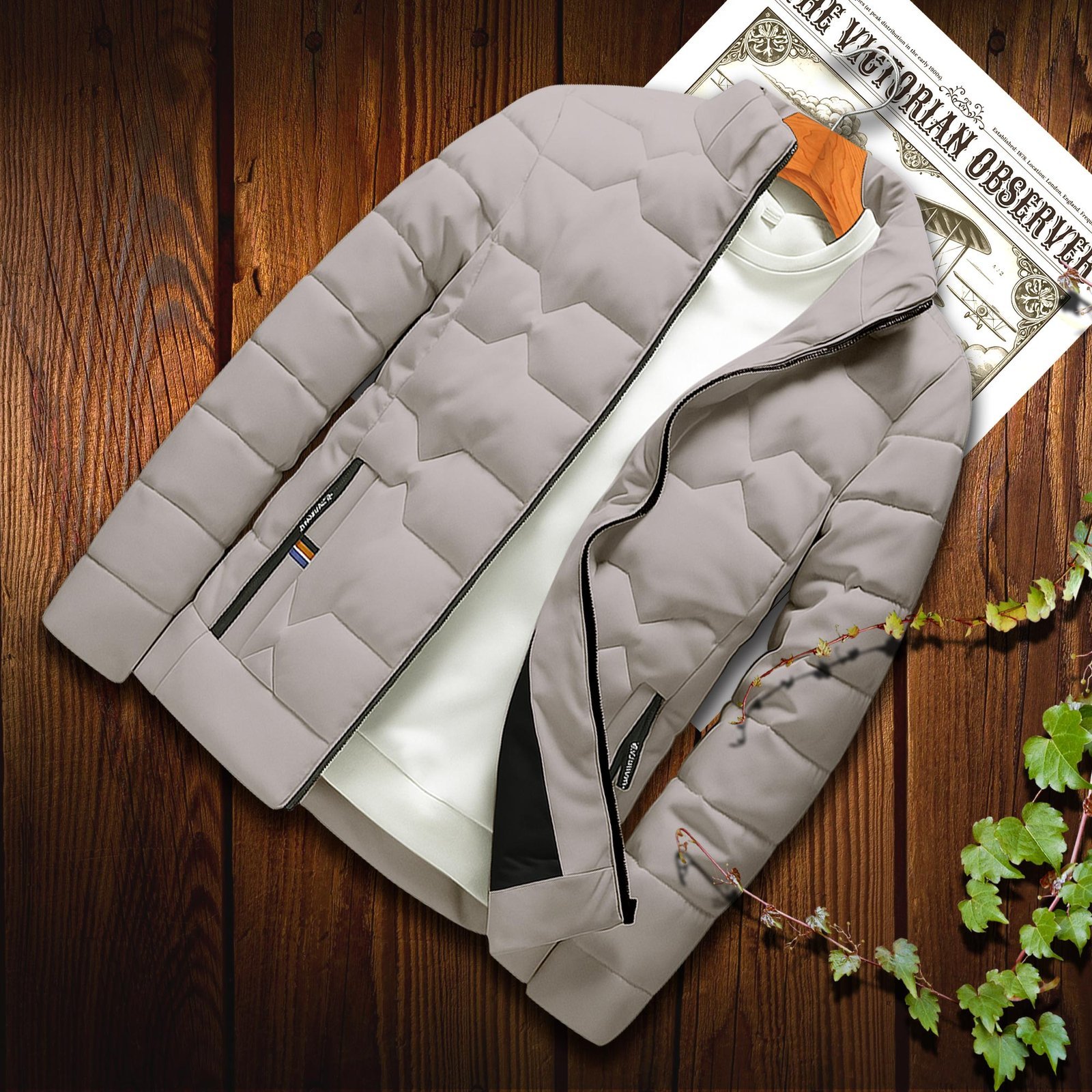 Premium Padded Jacket Colour=CREAM SILVER